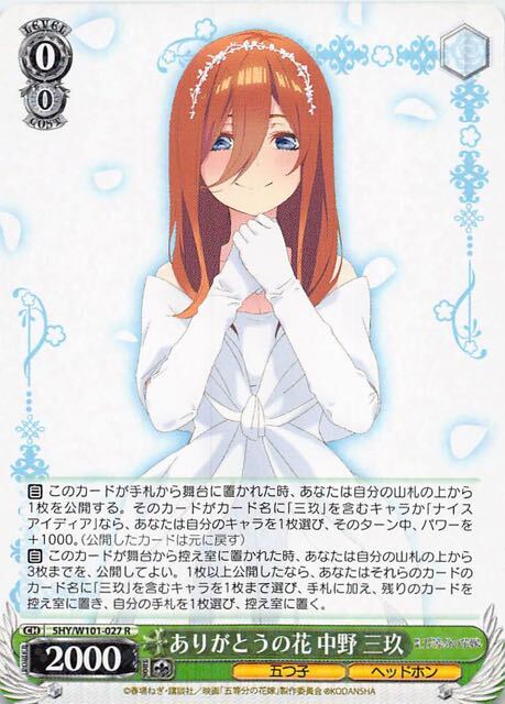 ヴァイスシュヴァルツ 映画 五等分の花嫁 R ありがとうの花 中野 三玖 5HY/W101-027[ランクA] [card-ws101027]
